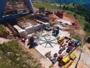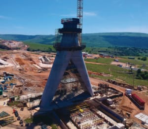 With the anchors blocks approaching completion and the legs of the pylons – which make up the first 20 m of the pylon structures – already complete, the focus of the project going forward will be on the construction of the circular pylon spires and the composite steel and concrete bridge deck.