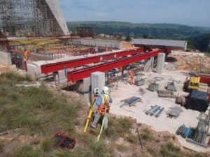 The Msikaba Bridge, which will span the 198 m deep Msikaba River gorge, forms part of the South African National Roads Agency Limited’s (SANRAL) N2 Wild Coast project and is being constructed by the CME JV, a partnership between Concor and MECSA, both 100% black owned Grade 9CE South African construction companies.