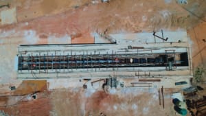 Each anchor block has a length of 49 m, a width of 10 m at the base (narrowing to 4 m on the spine of the structure), a depth of 17.2 m, and a mass of 21 500 tons. Their construction has been underway virtually since work on the Msikaba project began in earnest in late 2019. They will reach completion shortly, mere weeks before the deck is launched over the gorge.