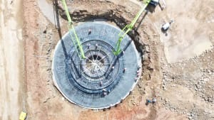 Each turbine base constructed measures over 20 m in diameter and is around 3,3 m deep, requiring over 400 m3 of 45 MPa concrete – with an additional 18 m3 of 50 MPa concrete in the plinth.