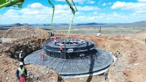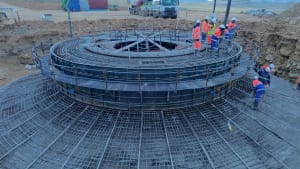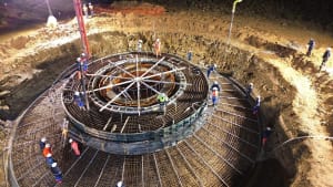 Each of the San Kraal wind turbine base foundations used a total of 64 tons of reinforcing steel.