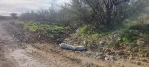 Topsoil is preserved along a road servitude at the Karreebosch Wind Farm facility, ensuring environmental care during construction.