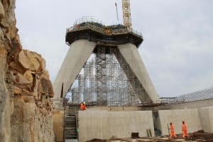 These two legs make up the first 20 metres of the inverted Y shaped pylon and are built without any lateral support as free cantilevers.