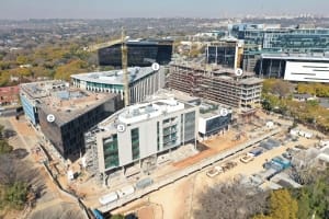 Martin Muller, Concor Buildings’ contracts manager, explains that all the buildings are constructed to be compliant with Green Star design requirements. 199 Oxford Road in Phase 1 achieved a 5-Star Green Star rating. All specifications on the project are in line with Green Star requirements and the buildings in Phase 2 are also designed to achieve 5-Star Green Star ratings.